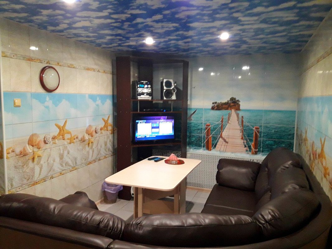Не хочется в бассейн? Не проблема! Вместо этого можно провести время в нашей комнате отдыха. Мы постарались создать здесь комфортный, стильный интерьер из максимально натуральных, экологичных материалов, выбрать мебель, которая будет одновременно удобной и красивой. Надеемся, что вам понравится! Для создания настроения у нас есть караоке. Мы не располагаем собственной кухней, но не возражаем, если вы принесете еду с собой и совместите баню с импровизированным застольем. Только не забывайте, что плотная трапеза непосредственно перед посещением парной - это не самая хорошая идея, согласно мнению терапевтов. А вот после парной можно трапезничать смело!